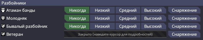 - Молодняк — новичок в разбоях, пытается освоить трюки бывалых бандитов, при этом не попадясь страже.