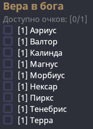 Данная настройка определяет, в кого из Богов верует ваш персонаж.