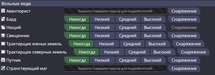 Разберём изменения в списке доступный ролей. Хотя изначально вам будут доступны вольные, а также стартовые роли фракций, на первую игру рекомендуется взять обычного путника или авантюриста.