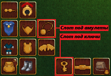 Палитра инвентаря стала более золотистой и яркой. В неё были добавлены новые слоты под ключи и амулеты.