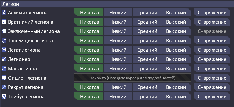 - Вратничий легиона — стойте на вратах и решайте, кто может пройти, а кто нет.