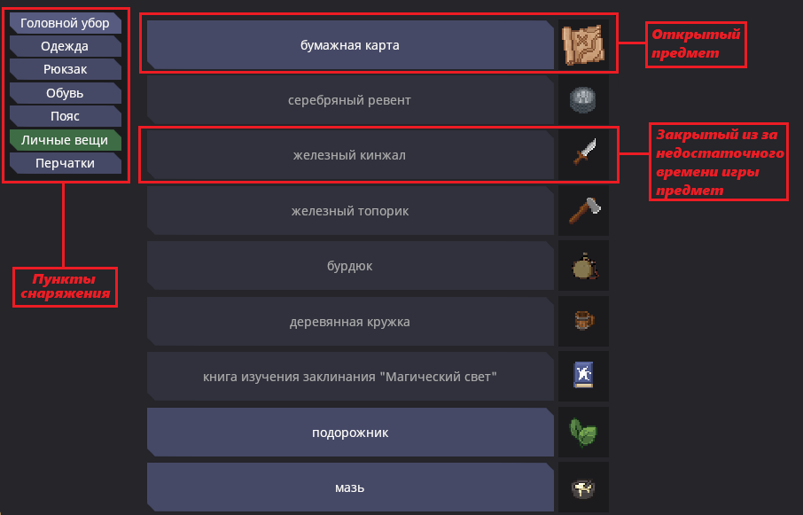 Рядом с выбором роли появилась новая кнопка "Снаряжение", она позволяет выбрать экипировку персонажа до начала раунда. Это может быть как обычная косметическая одежда, так и крайне полезные предметы, а именно: "Лекарства", "Дополнительные деньги", "Оружие ближнего боя", "Более вместительный рюкзак", "Карты и пергаменты". В каждом из разделов будет доступно только несколько очков на выбор предметов, так что постарайтесь распределить их максимально эффективно.