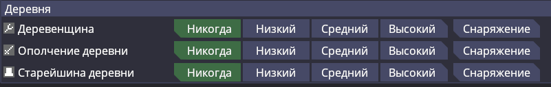 - Старейшина — отвечает за работу деревни и торговлю с остальным миром.